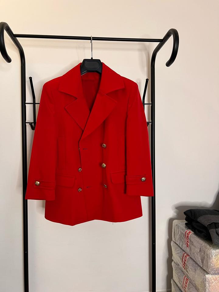 Эффектный красный костюм Liu Jo (Made in Italy), размер 42 Ищете вещь, в которой вы будете блистать и производить впечатление? Этот роскошный костюм от итальянского бренда Liu Jo — ваш идеальный выбор! Пиджак: • Стильный двубортный крой с выразительными лацканами • Акцент на золотых пуговицах — элегантность в каждой детали • Идеальная посадка по фигуре, подчеркивающая линию плеч и талии Брюки: • Прямой, слегка зауженный крой • Плотная, гладкая ткань, которая держит форму Артикул: 241661