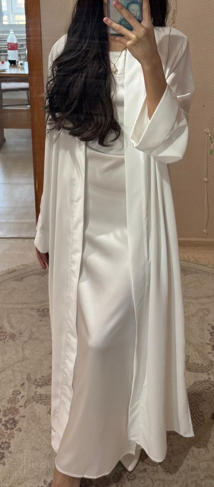 Абайка материал атлас,sarbinaz shopтан алдым 15ке,размер стандарт,1 рет неке қиюға кидім Артикул: 242709