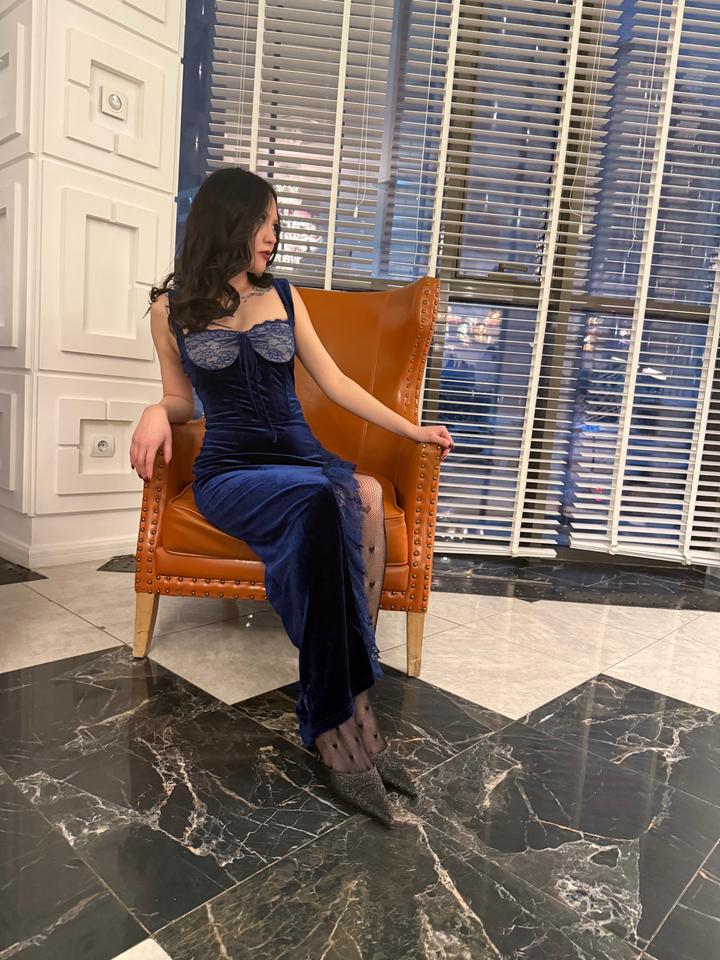 Бархатное платье ультрамаринового синего цветаS
