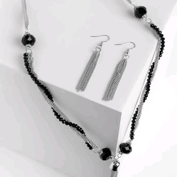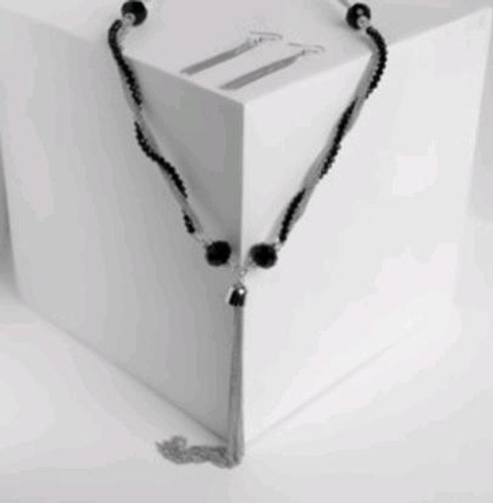Стильный набор колье + серьги - цепочки. Колье длиной 60 см, серьги 10 см. Артикул: 243498