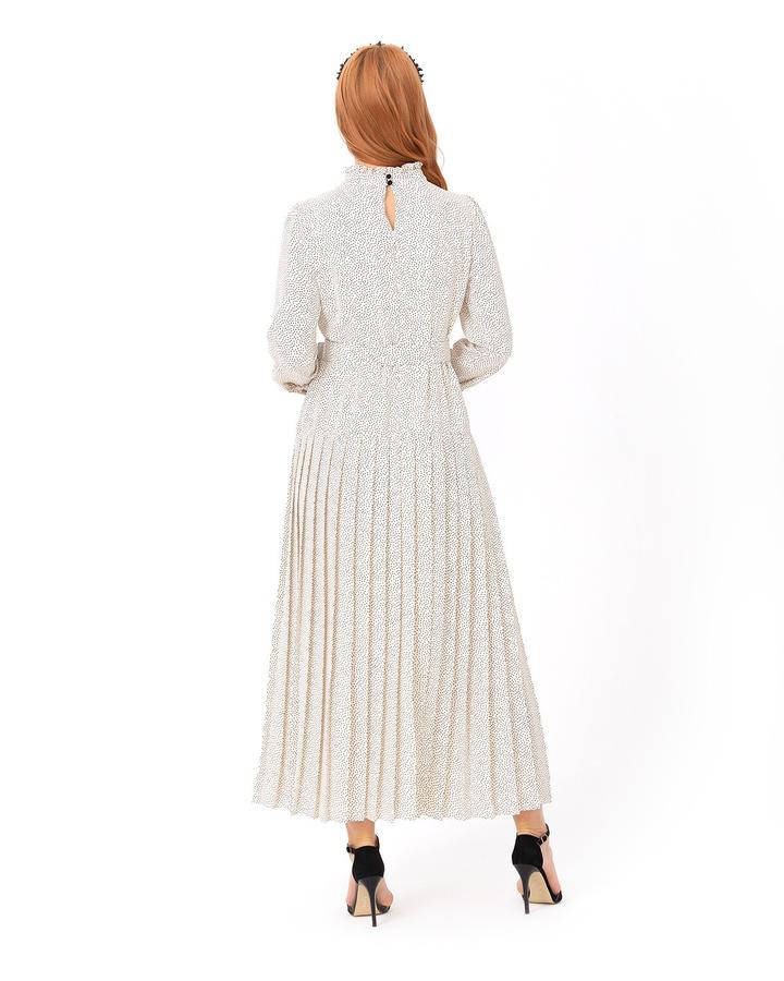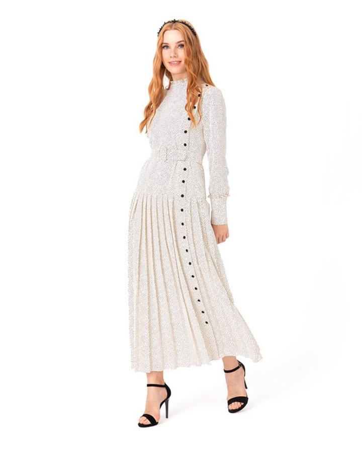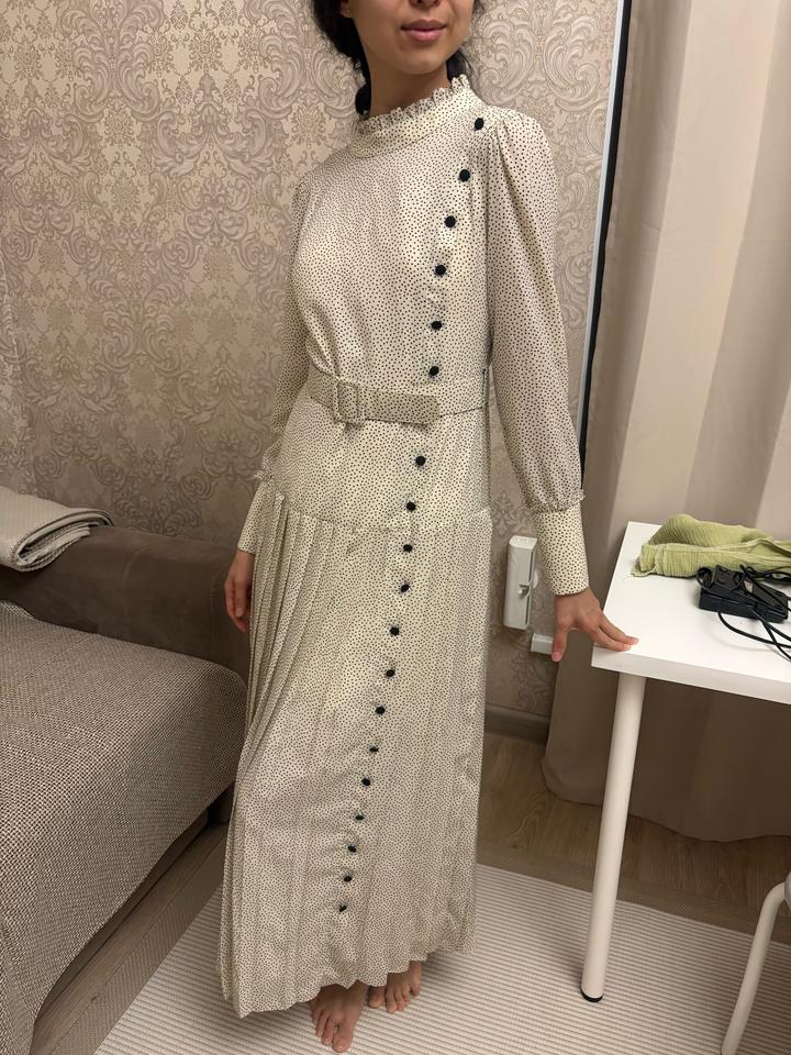 Длинное платье молочного цвета в горошек с ремнемS/M