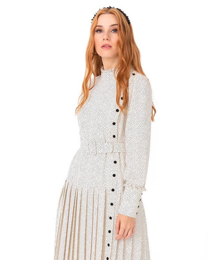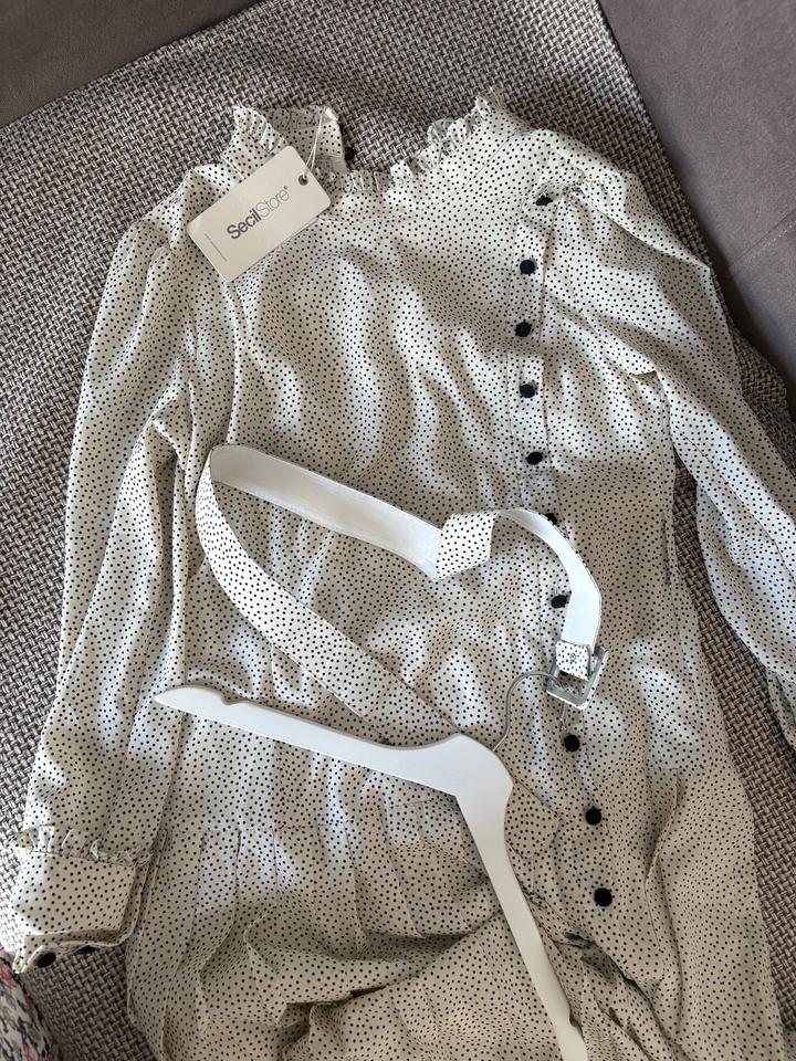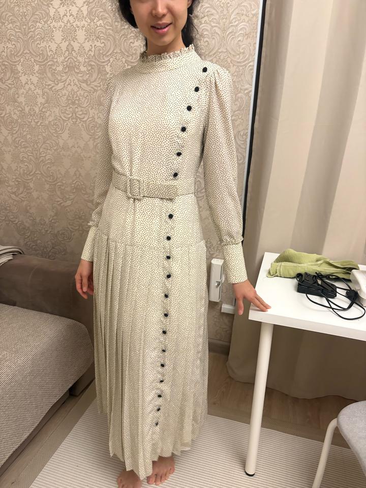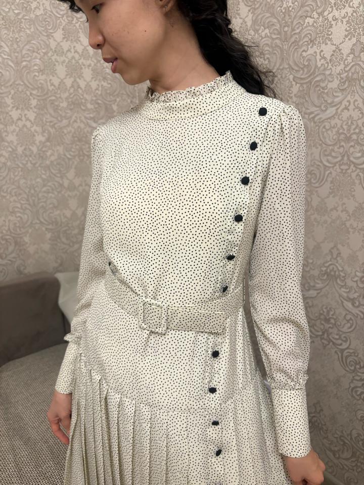 Платье турецкого бренда secil store Новая, с этикеткой, размер 36-38 Молочного цвета в горошек с ремнем Артикул: 244694