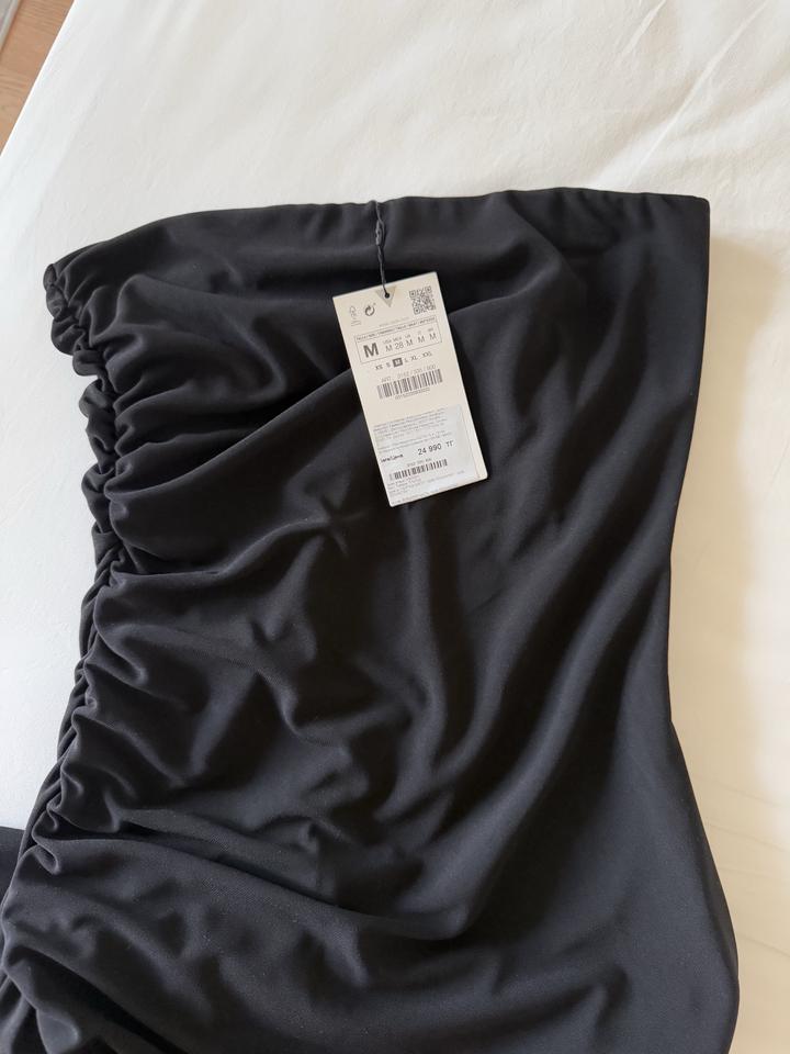 Новый сарафан Zara с этикетками, размер М, ткань мягкая и тянется , но сама модель приталенная , подчеркивает фигуру, хорошо подойдет на С размер . Застегивается на молнию. Без бретелей. Цвет черный. Сбоку сборка Артикул: 245696