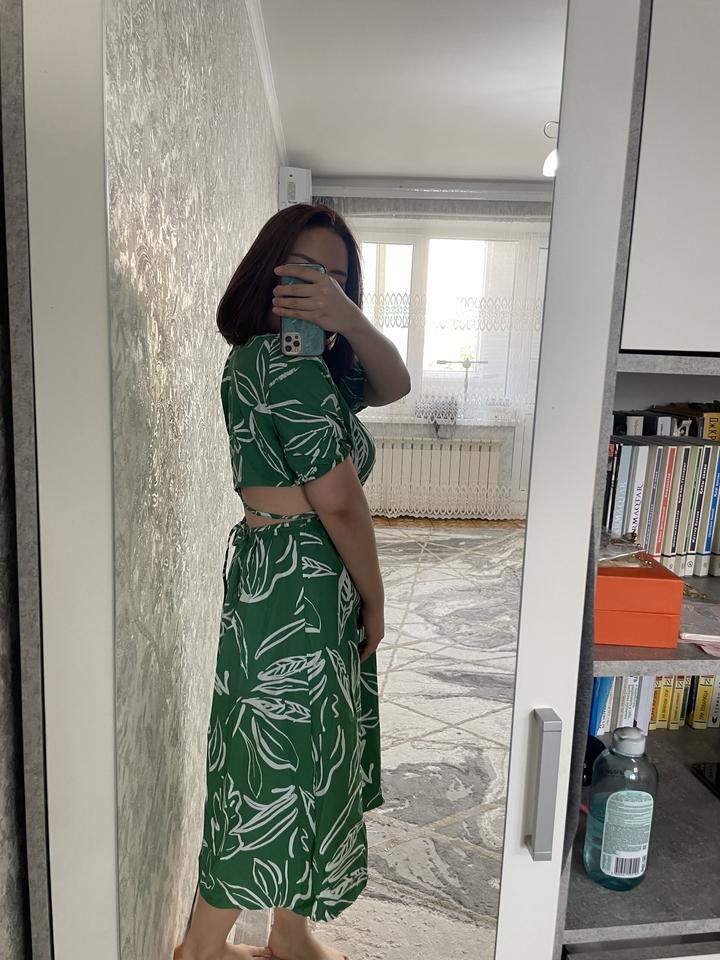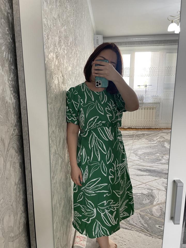 Продам яркое и стильное платье цвета сочной зелени с крупным белым принтом. Фишка модели — открытая спинка с завязками, которая создаёт эффектный образ. Лёгкая ткань, свободный крой, короткие рукава с объёмом — идеально для лета и отпуска! производство Турция 🇹🇷 Артикул: 245962