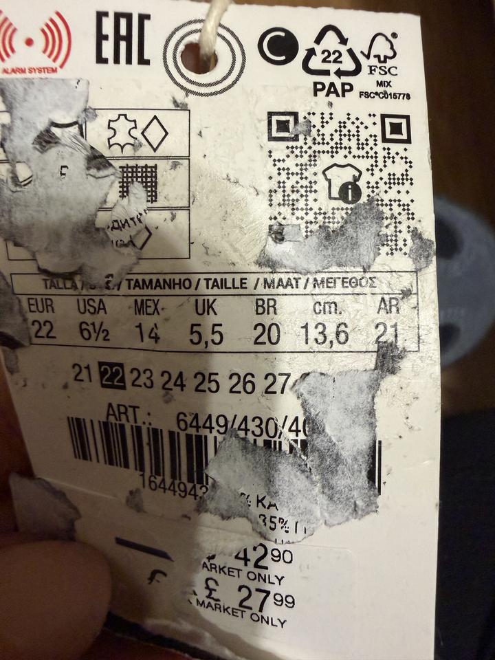 Размер 22 Не подошел подъем Артикул: 247893