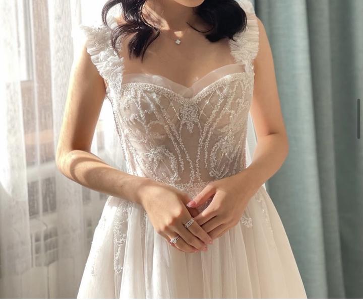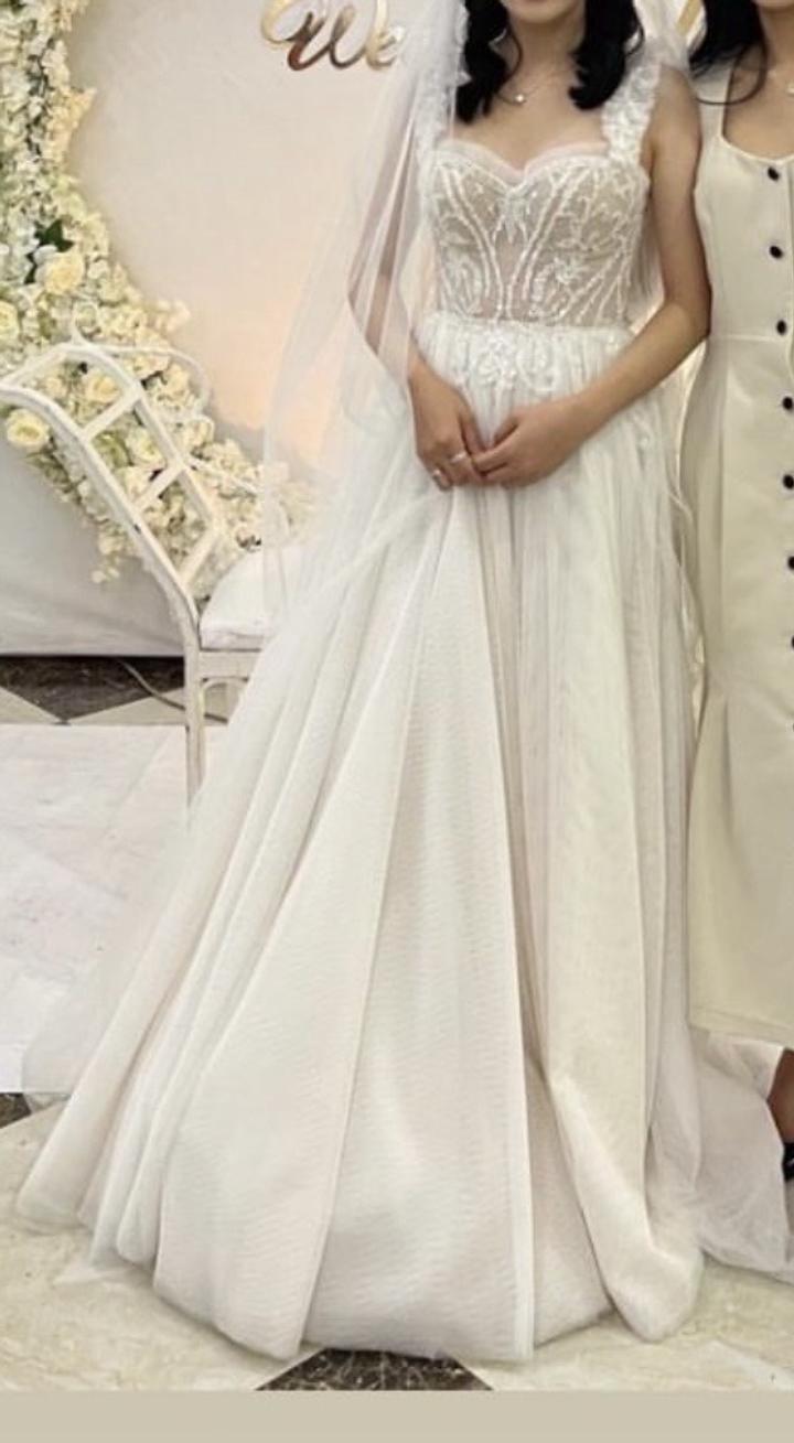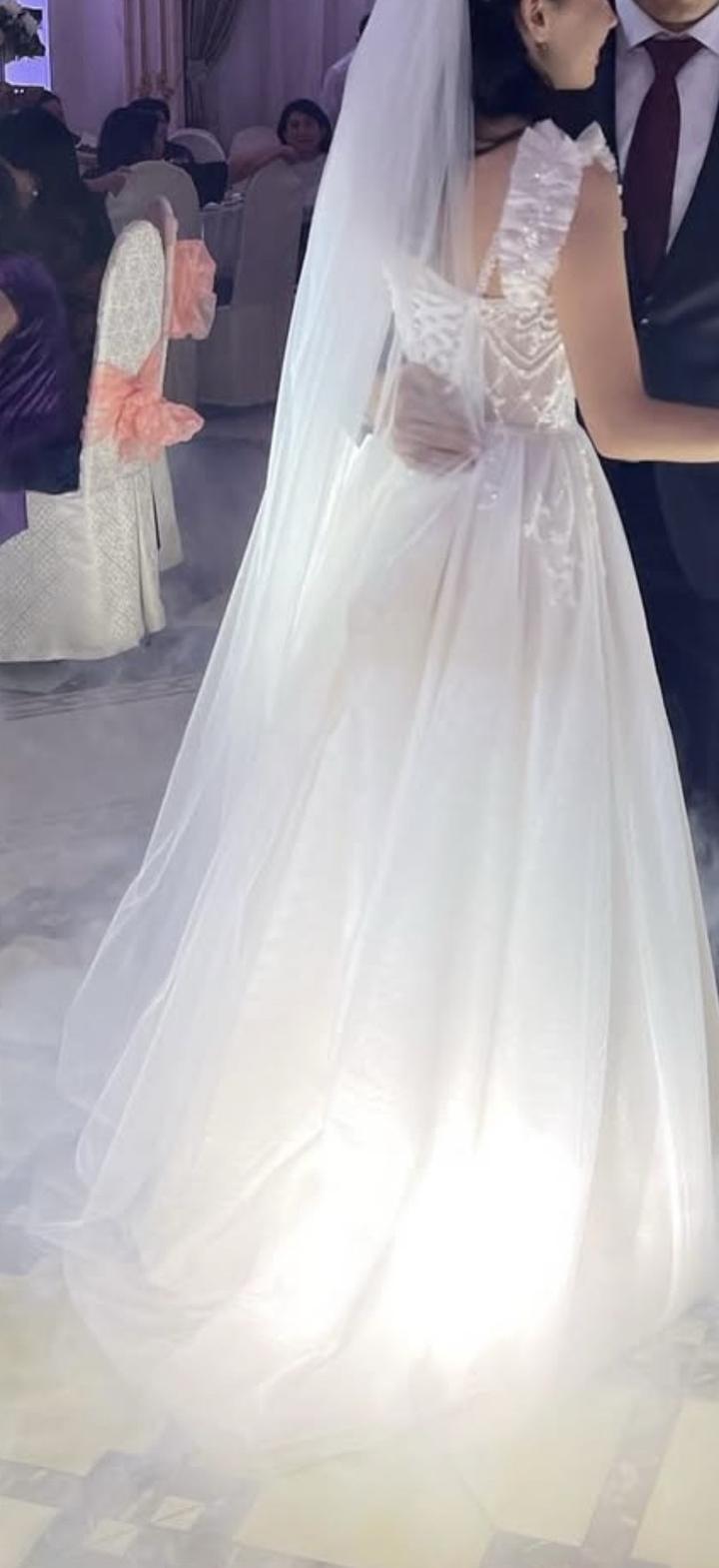 Свадебное платье от магазина White Swan. Размер от xs до L регулируется. Вместе с платьем идёт кольцо. Артикул: 248502