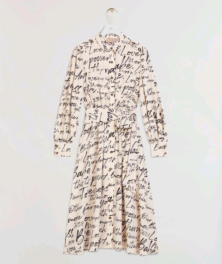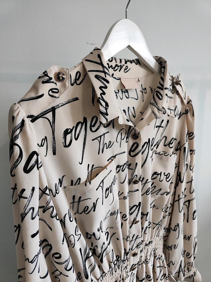 Продам премиальное платье от всемирно известного бренда Josh! Есть нюанс, ремешок утерян, но можно обыграть чёрным из ткани, или вовсе без него! Платье выполнено из брендированной и эксклюзивной ткани Josh, кремового цвета, где как-будто расписанные кистью слова любви, любви к женщине! Пуговички, как отдельный вид искусства и роскоши, вдоль платья и по руковам! Невидимые нагрудные кармашки, резинка вдоль линии талии! Это платье несёт Артикул: 249944