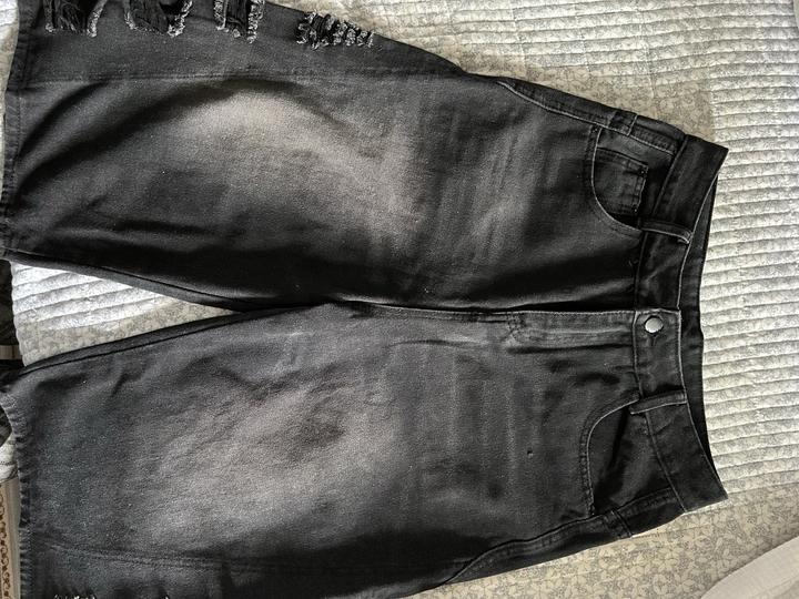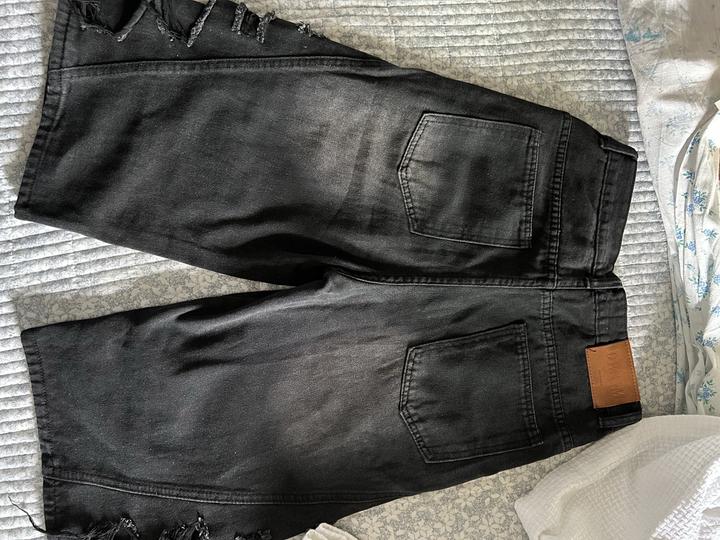 Это чёрные джинсовые бермуды (удлинённые шорты) с лёгким эффектом потертости Артикул: 250874