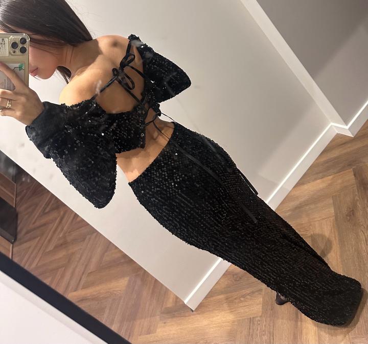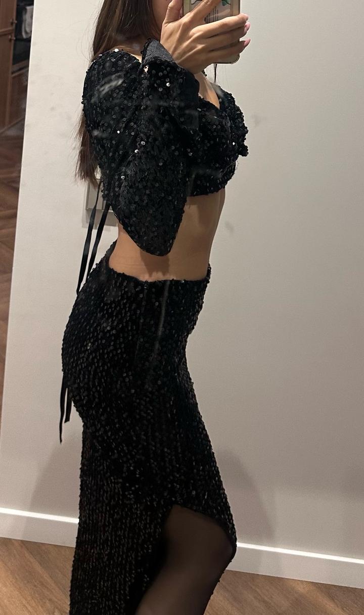 Брала в imaanstudio. Надевала 1 раз. Юбка на замочке, вверх как корсет. Размер S (подойдёт и на M,так как тянется ткань). После химчистки. Шикарный комплект, будете сиять) Артикул: 251411