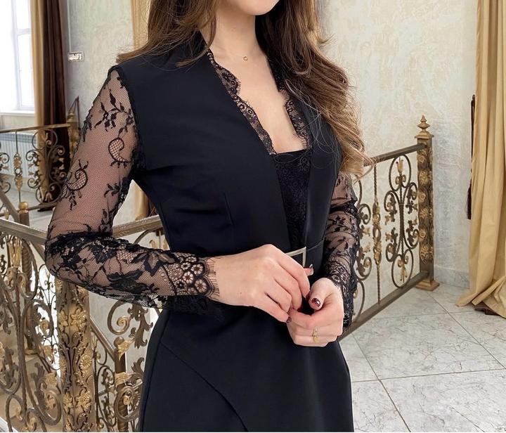 Черное платье из костюмной ткани, с элементами гепюра,в отличном состоянии Артикул: 253705