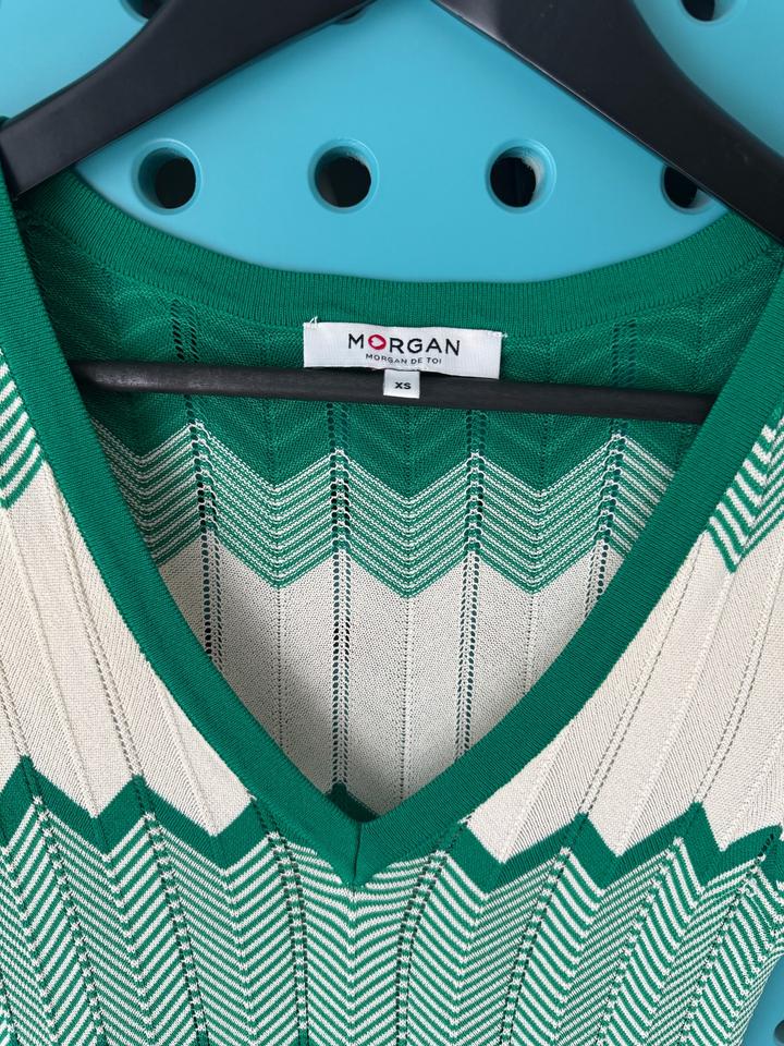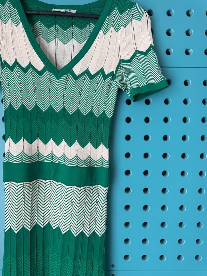 В идеальном состоянии, надевала один раз! Модель платья очень стройнит. Заявленный размер xs, но по факту подойтёт и на 44. Состав: вискоза- 62%, полиамид -38% Артикул: 255171