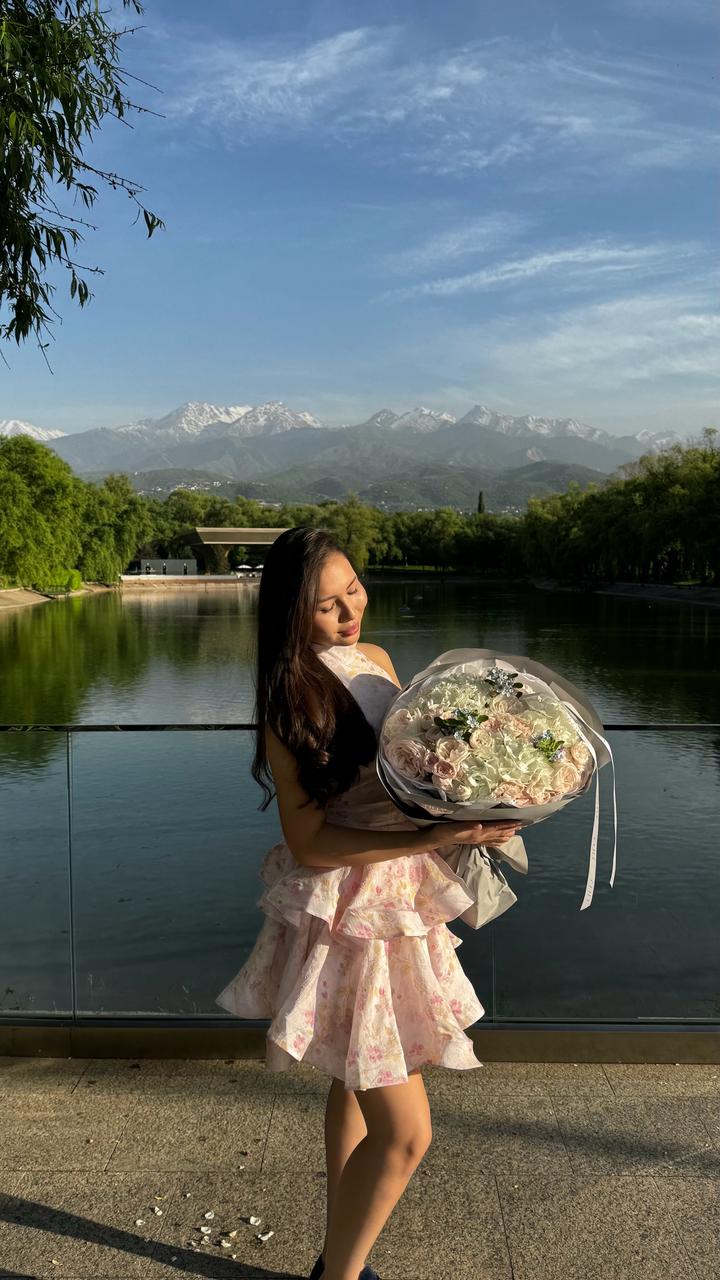 Белое/Розовое платье в цветочек, надето один раз на фотосессию, в отличном состоянии Артикул: 256239