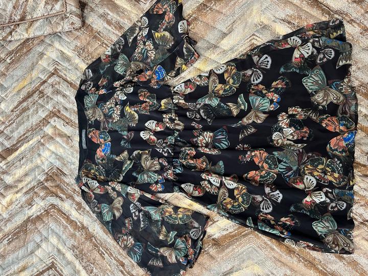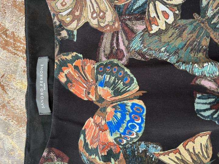 Продаю шифоновое платье с принтом бабочек • Бренд: Sandro Ferrone • Производство: Италия • Размер: S • Материал: легкий шифон с подкладом • Длина: ниже колен • Особенности: на поясе резинка, в отличном состоянии Стильное и изысканное платье для летних прогулок и мероприятий. Легкая ткань с романтичным принтом бабочек подарит вам комфорт и элегантность. Артикул: 257386