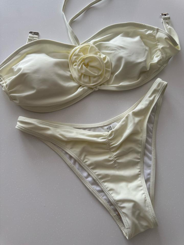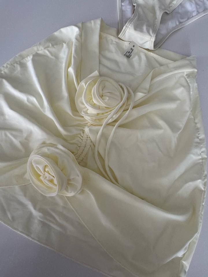 Новый купальник в размере М. Лиф бандо со вставными чашечками и с завязкой, трусы на высокой посадке, визуально удлиняют и подчеркивают фигуру. Утягивающая юбка с элегантной сборкой спереди создает стильный образ. Цвет: слоновая кость Артикул: 259805