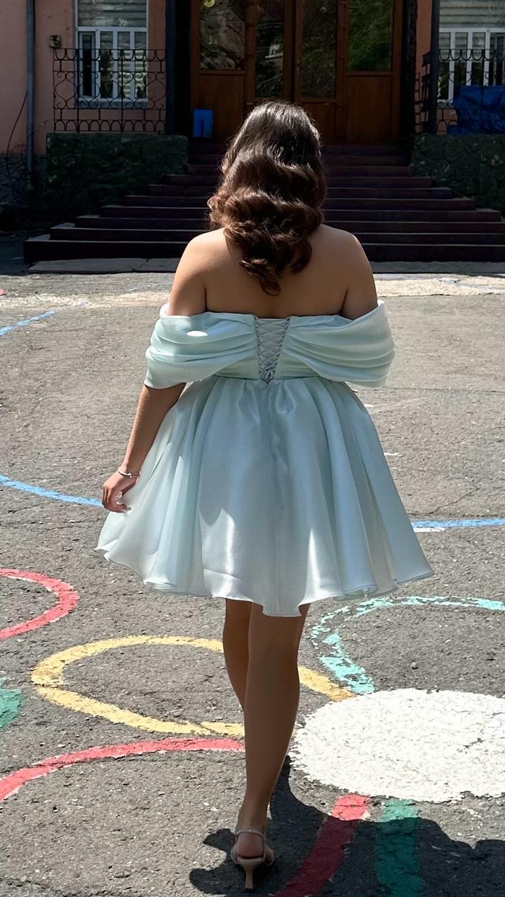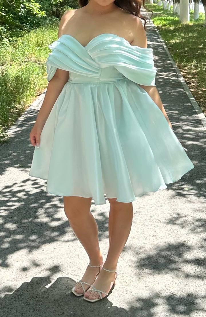 Платье с открытыми плечами и спущенными рукавами в цвете Тиффани, в идеальном состоянии, надето 1 раз. Размер 46. Артикул: 260592