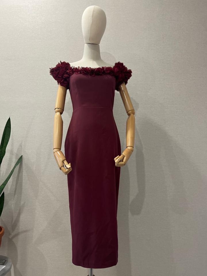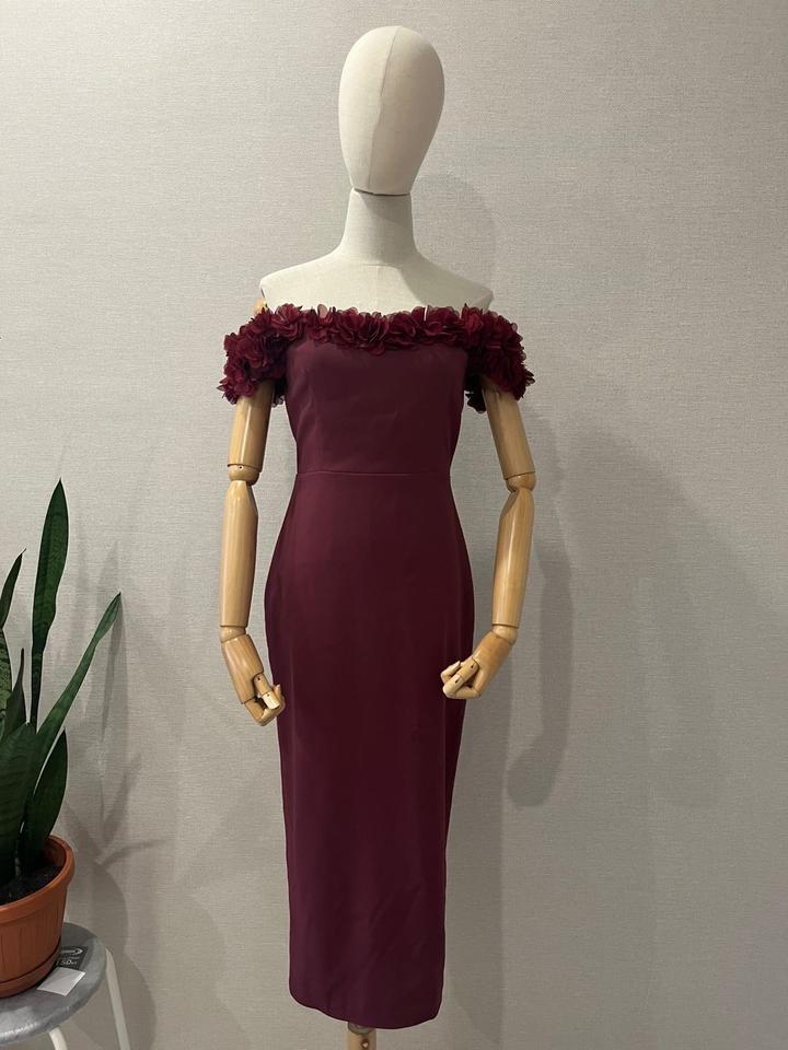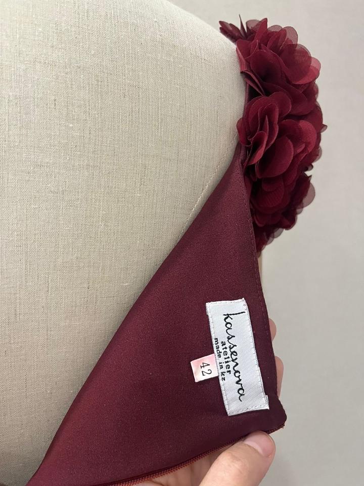 Нарядное платье футляр обшитое цветами от казахстанского бренда Atelier Kassenova. Длина ниже колен. Размер S - 42 Артикул: 261102