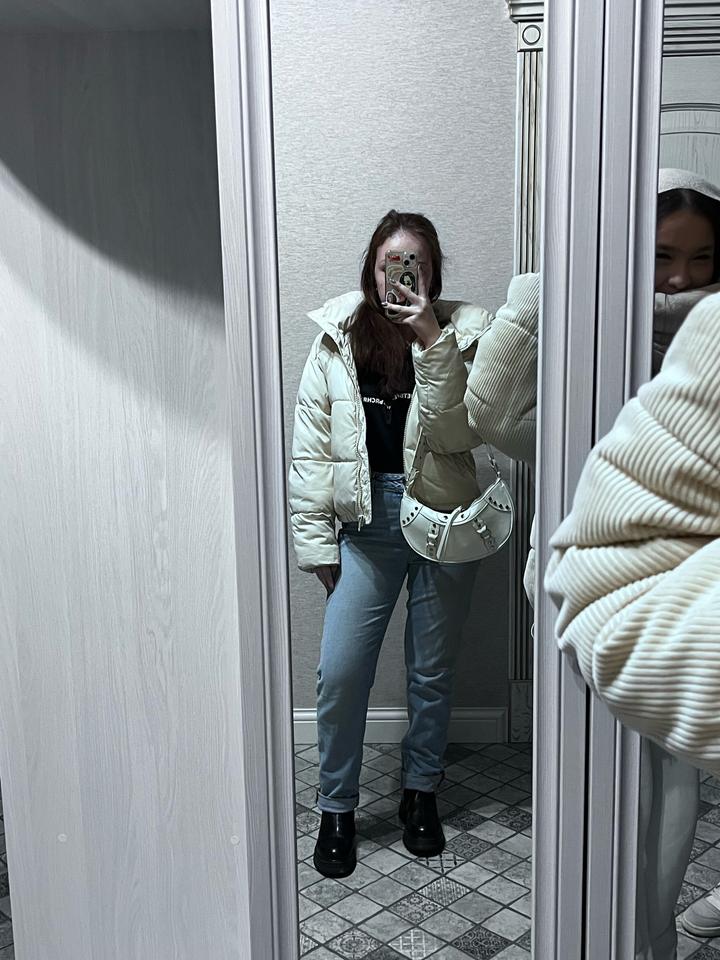 Куртка размера стандарт. Подойдет на S-M. Покупала в Pull and Bear. В астанинскую зиму можно ходить в ней до -20. Теплые комфортные мягкие карманы. Классный плотный теплый капюшон, даже в -10 можно ходить в нем без шапки, т к греет. Очень мягкая куртка. Цвет такой бежево-молочный. В отличном состоянии Артикул: 262445