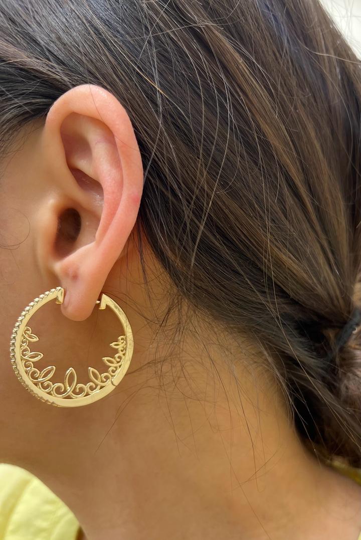 Серьги кольца с камнями бижутерия, с казахским орнаментом Артикул: 263245