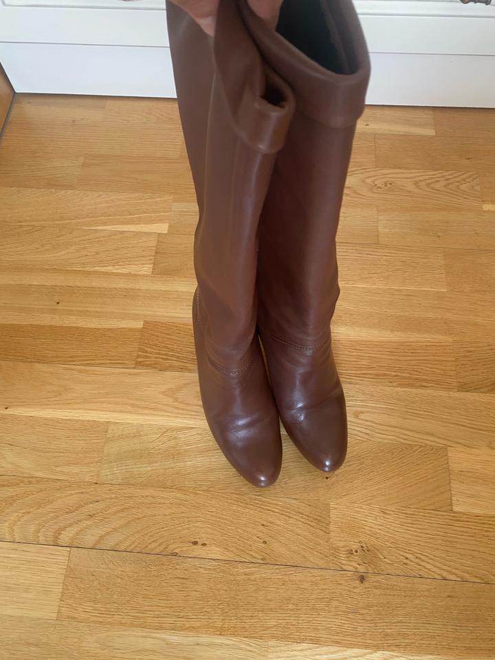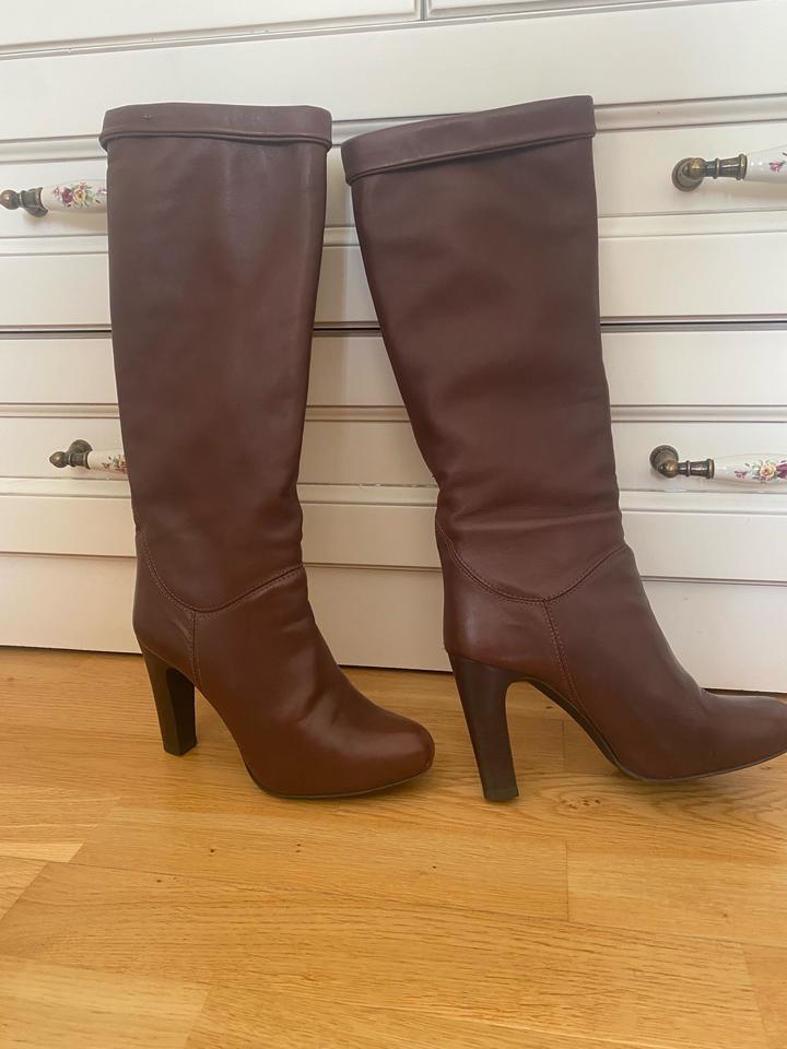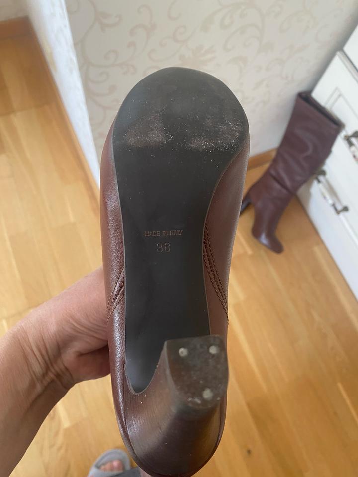 Сапоги демисезонные итальянские. Экокожа, очень хорошо смотрятся на ноге. На изящную тонкую голень. На небольшой танкетке, 1 см. Высота каблука 8 см. Очень удобная устойчивая колодка. Носила очень аккуратно. На носке небольшая потёртость. Но в целом, в очень хорошем состоянии. Без коробки. Артикул: 264330