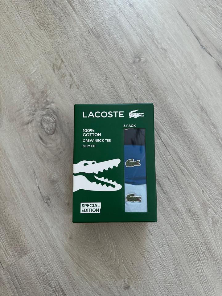Футболки оригинал, Lacoste, в упаковке 3 штуки. Можно и для мужчин и девушек. Размер S, slim fit. В упаковке три штуки. За все три 27000, можно на подарок Артикул: 264761