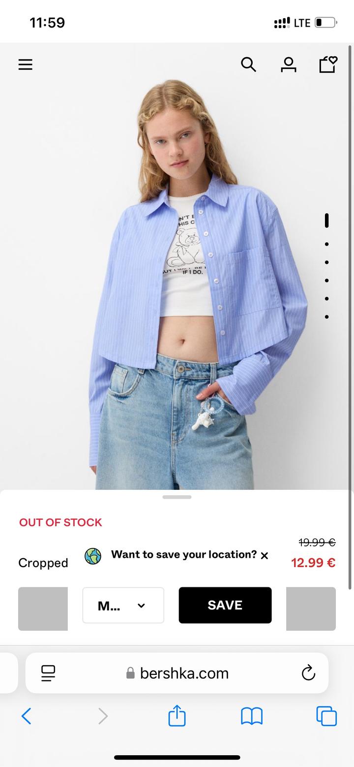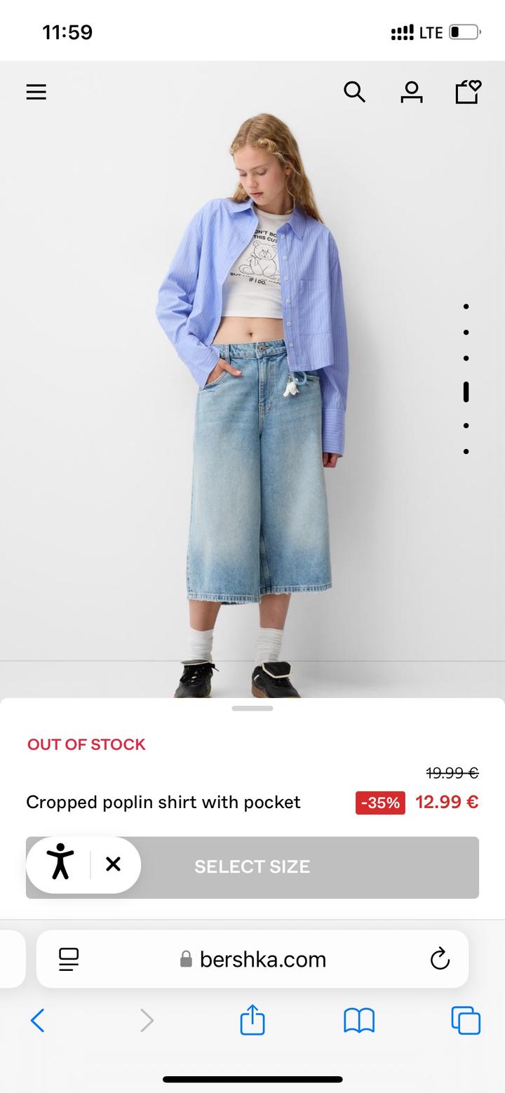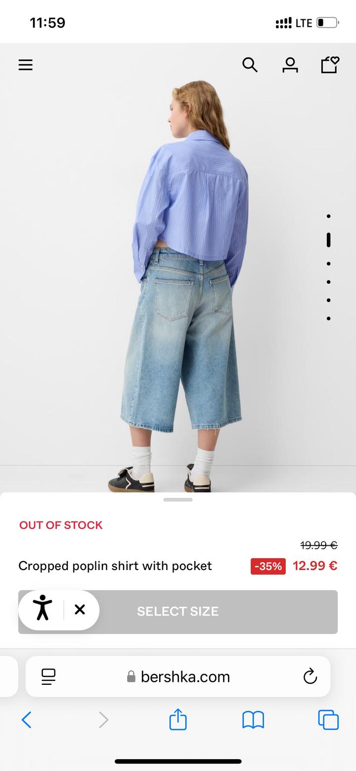Укороченная рубашка из поплина с карманом Bershka XS Артикул: 264998