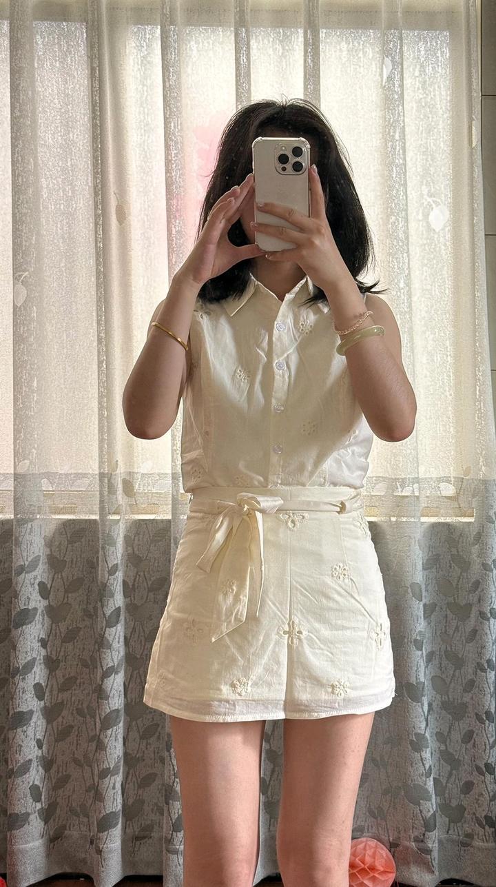 Костюм двойка из шитья, рубашка и юбка, новая с биркой размер не подошел, на рр С,М сядет цвет молочный, на подкладе. В точности как на фото. Артикул: 265077