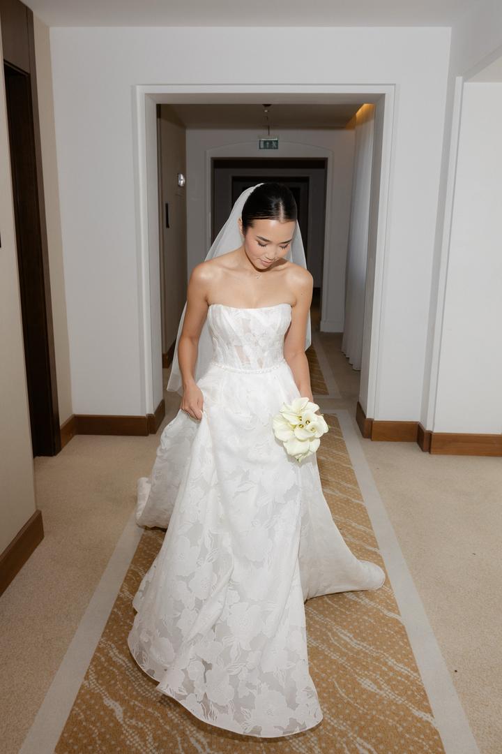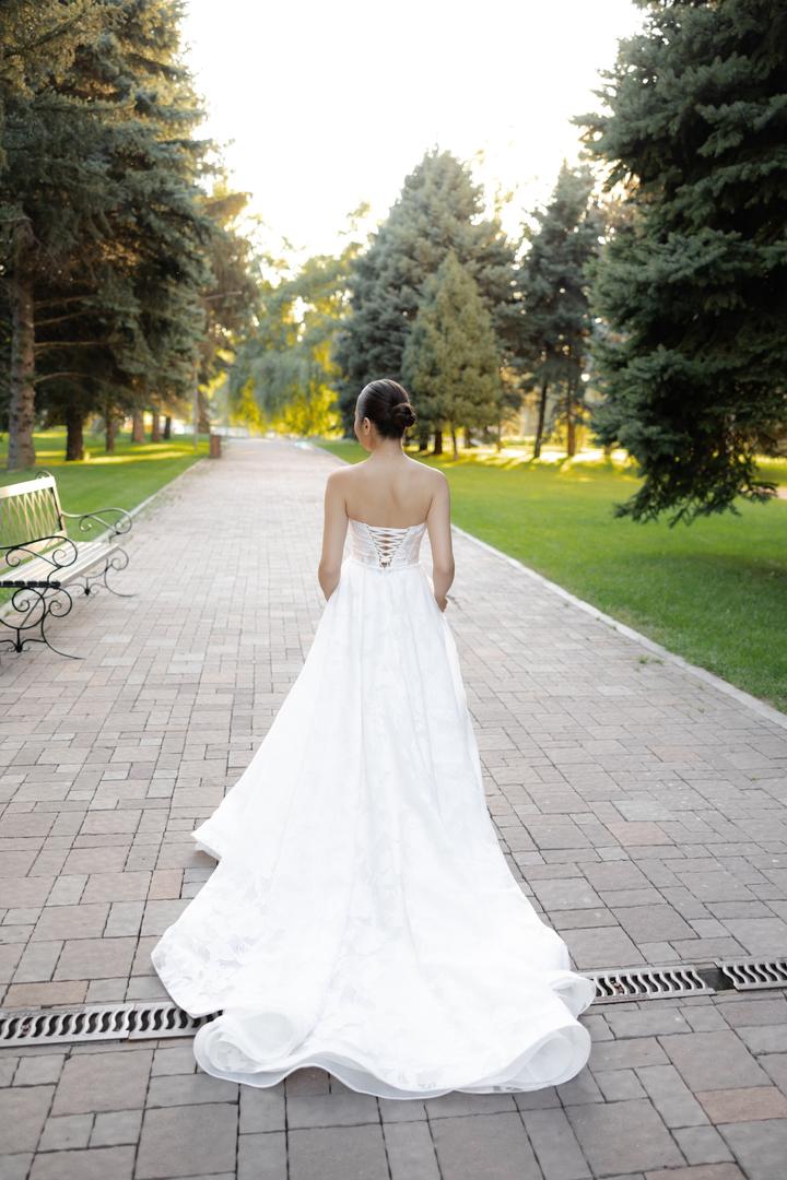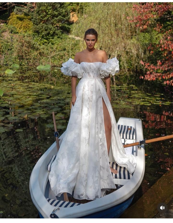 Свадебное платье , белое с цветочными узорами. После хим чистки . Также есть рукава, но я их не надевала. Прикрепила фото с рукавами на модели в конце. Артикул: 265899
