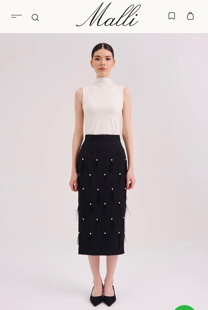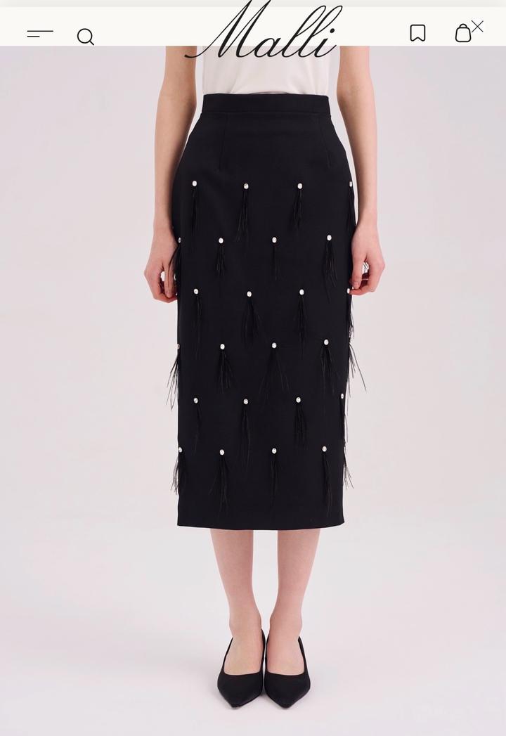 Элегантная чёрная юбка миди прямого кроя с высокой посадкой, украшенная перьями и стразами. Юбка на замочке, со шлицей сзади. Универсальная базовая юбка подойдет и для стилизации на мероприятия и в повседневных образах. Подойдет на размер S-M Ткань Милано Состав: 20% обработанная шерсть 80% лавсан Артикул: 266513