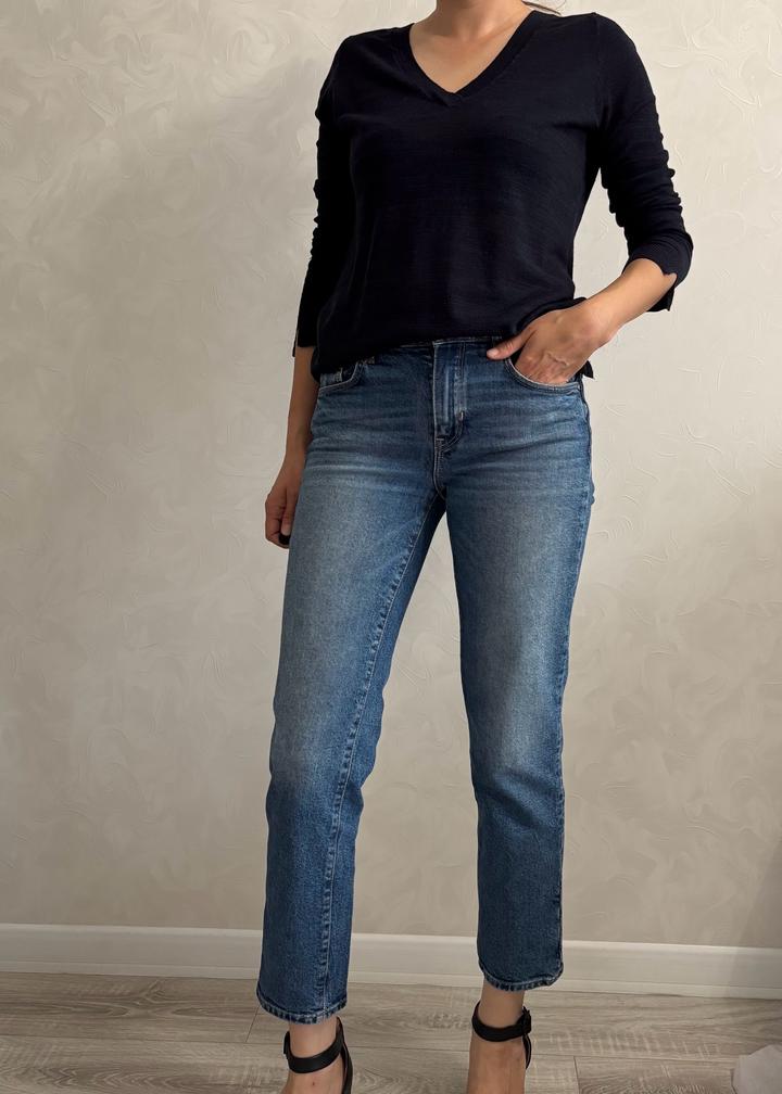 Укороченные плотные джинсы синего цвета. Размер eur 36. PS: Открывайте фото полностью в этом приложении. Артикул: 271418