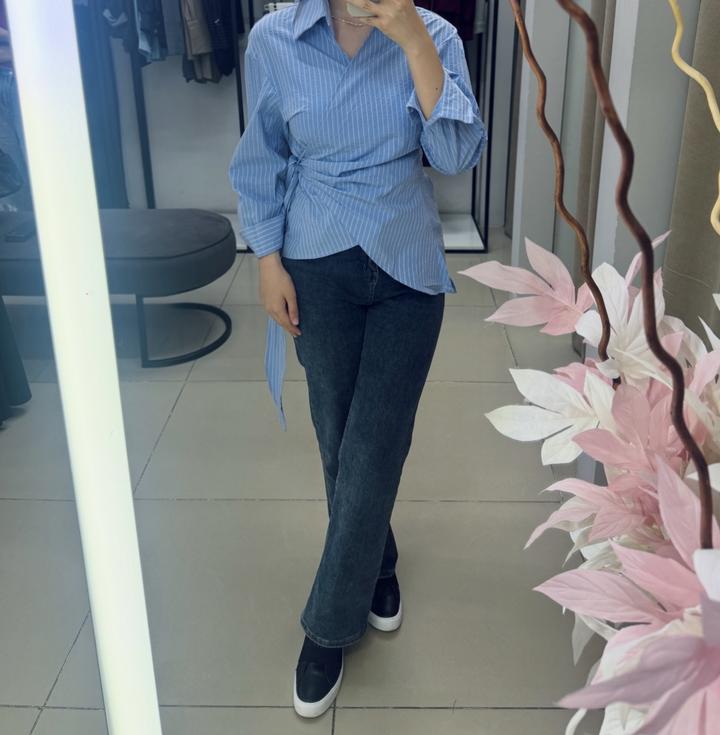 Женская рубашка с акцентом на талию Размер: S–M Цвет: голубой с белой полоской Состояние: новая / как новая 📌 Эффектная рубашка с запахом и завязкой на талии — подчёркивает фигуру и создаёт женственный силуэт. Универсальный фасон: можно носить как в офис, так и на каждый день. Материал — лёгкий, приятный к телу, хорошо держит форму. Актуальный принт в тонкую полоску. Артикул: 272175
