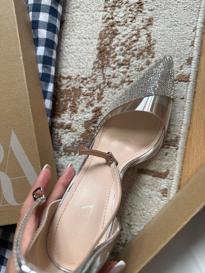 Zara туфли одевала один раз, блестки на носике упали, потому что платье длинное было, в длинными брюками и платьями не заметно, можно за символическую сумку каблук хороший,удобный,устойчивый Артикул: 273854