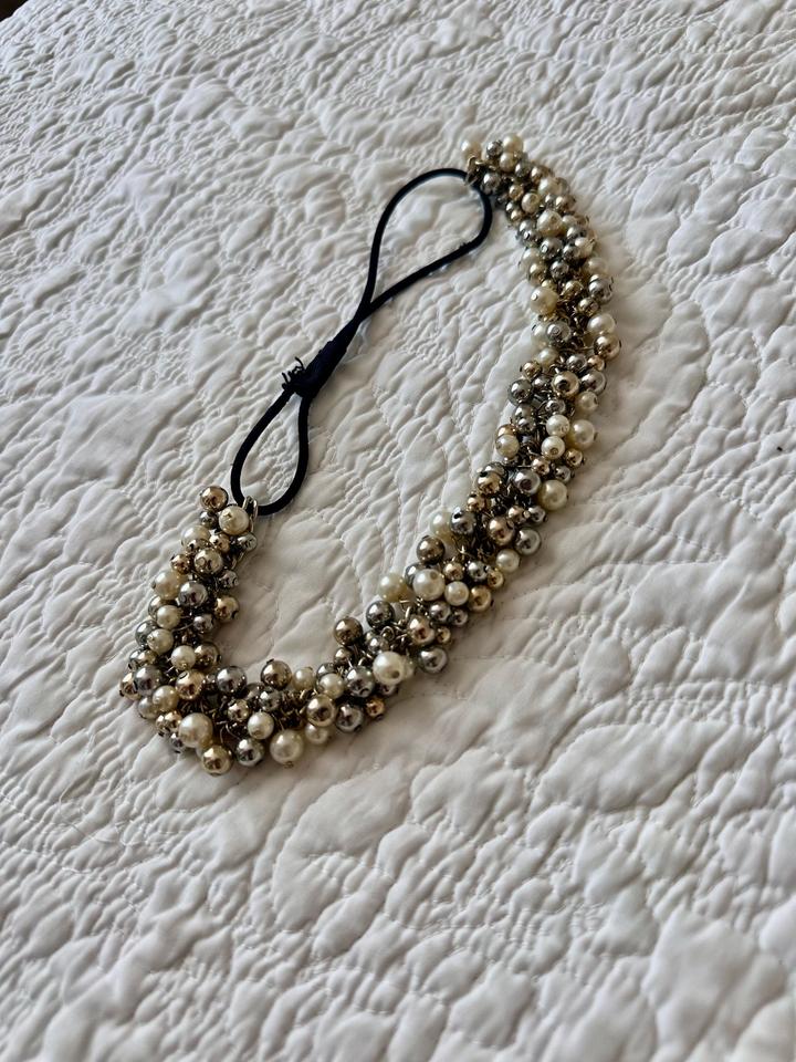 Мягкий Ободок на голову на резинке на любой обьем головы для маленьких девочек и взрослых девушек, красиво украшен бусинами, без дефектов Артикул: 275739