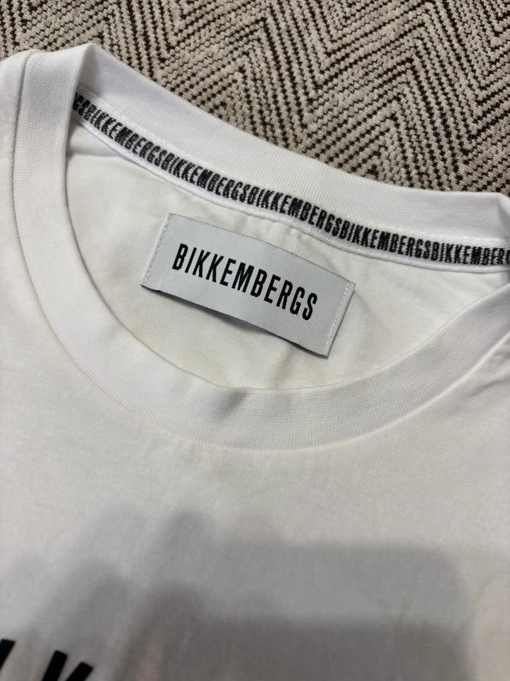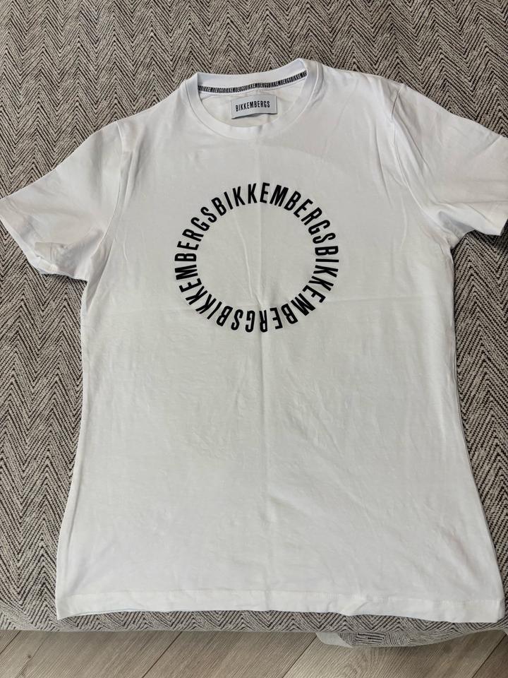 Белая футболка Bikkembergs (есть черного цвета), заказывал с официального сайта, размер L но она сильно приталлена, поэтому нужно рассматривать на размер S или M, одивал один раз, состоянии новой. Артикул: 275749