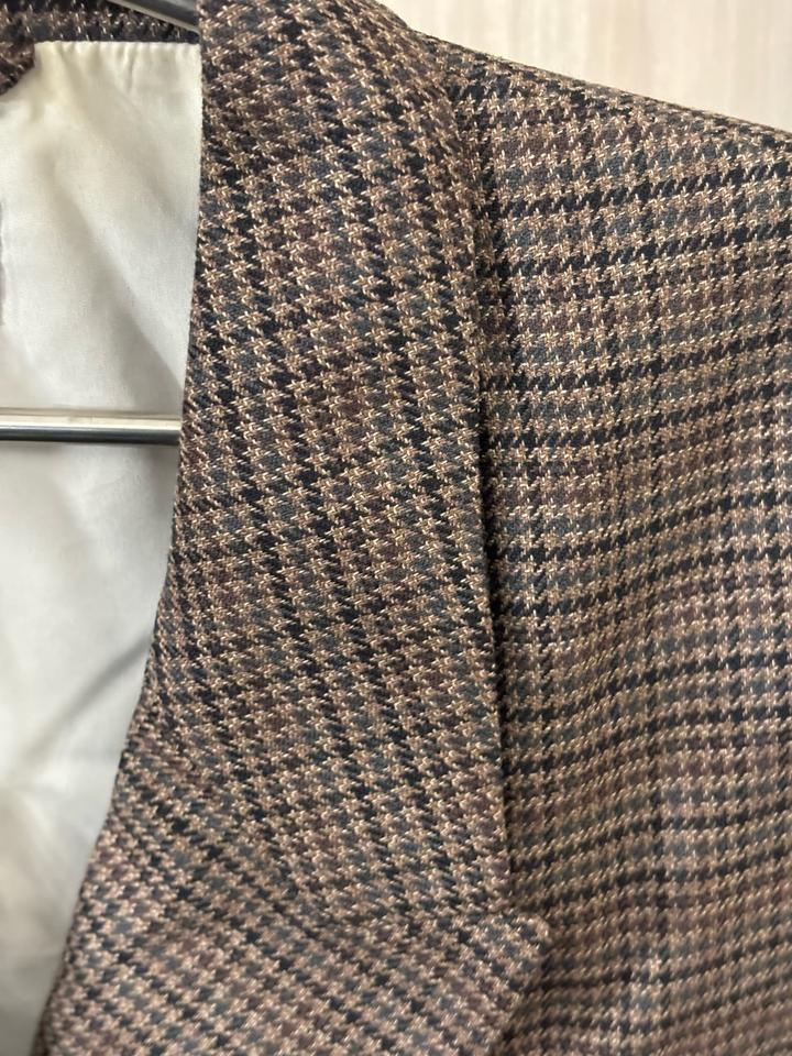 Коричневый пиджак с узором гусиная лапка, очень качественный, подойдет на рост до 170-172 и на размер S-M, прямого кроя и достаточно свободный. Надевала пару раз, к сожалению, цвет не мой, разонравился Артикул: 276271