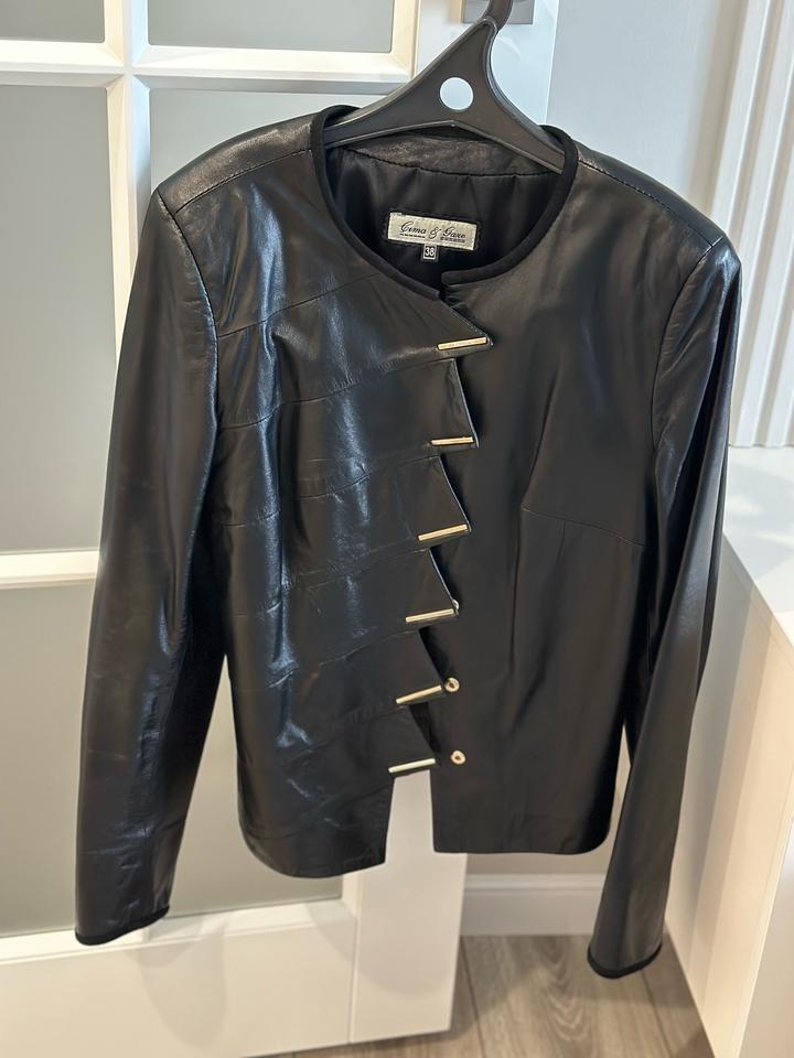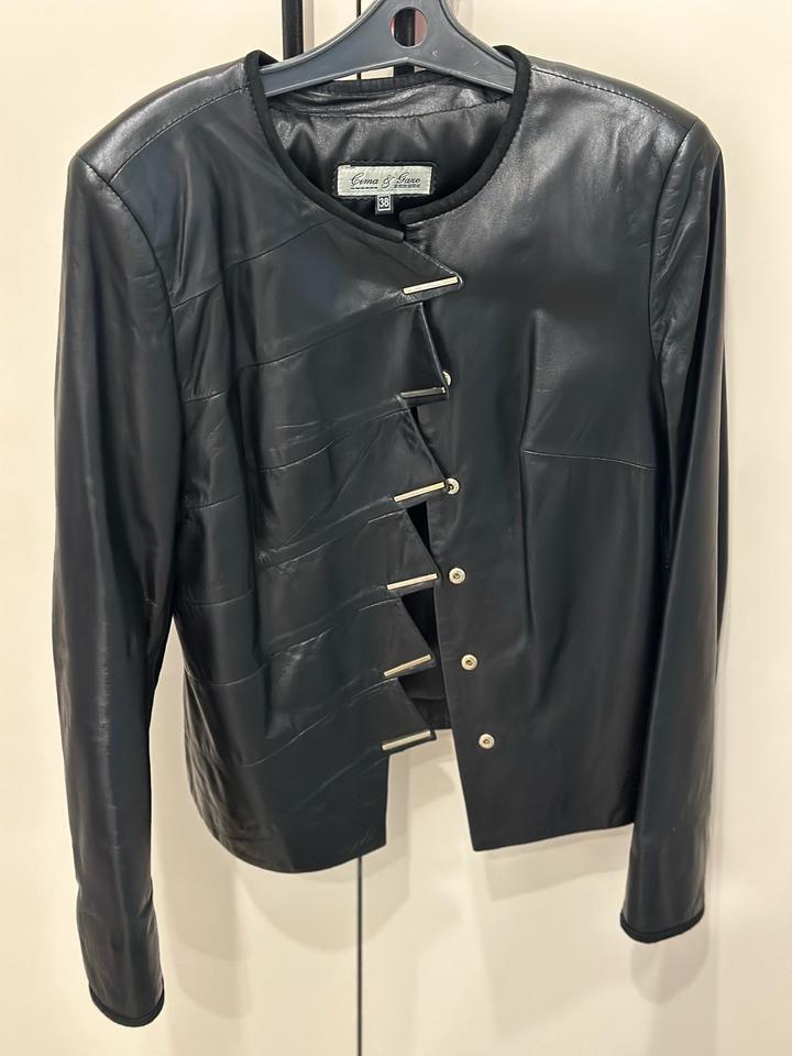 Куртка из телячьей кожи Турция, размер 38-й (42-44). Покупала в Турции, хорошое качество кожи, интересные заклепки, рукава и ворот окантованы замшей. Артикул: 278117