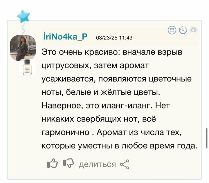 Атомайзер 5 мл. аромата из личной коллекции Это ода жизнерадостному мандарину в обрамлении утренних белых цветов. Очень сочный мандарин, на старте натуралистичный спелый фрукт, а со временем заслащивается в леденцы или газировку. Для меня это один из лучших парфюмерных мандаринов. Артикул: 278202