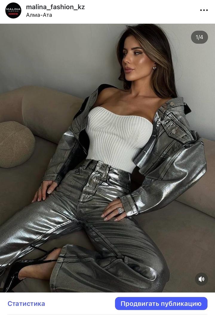Куртка джинсовая с напылением серебро Российский бренд Malina Bonita Размер XS (26) Надевала для фотосессии, этикетки сохранились Куртка отдельно 15000, джинсы 10000 Артикул: 278387