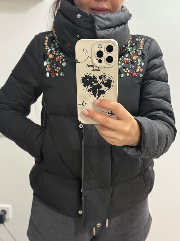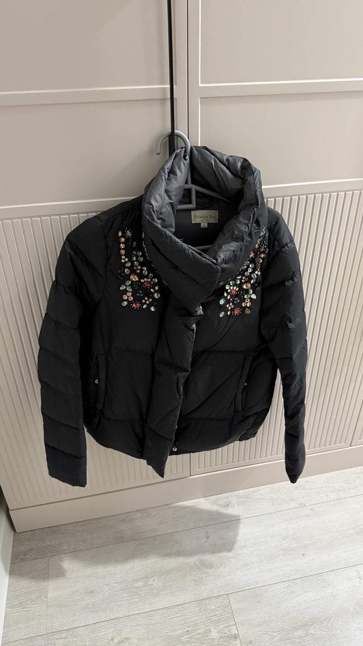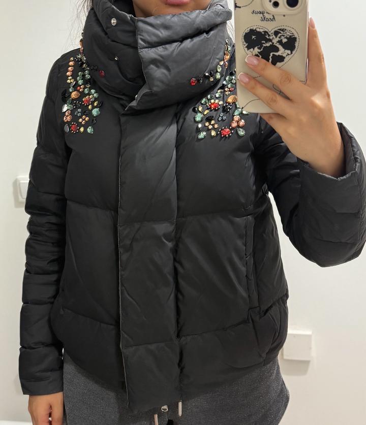 Легкий пуховик, обшит камнями, стойкий воротник но можно и открыть, подойдет на размер S Артикул: 280081