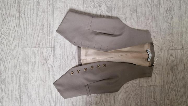 Жилетка zara шикарный состав ткани. Из 100%вискозы. Приятная к телу и цвет сложный бежевый очень красивый. Размер с-м. Артикул: 282419