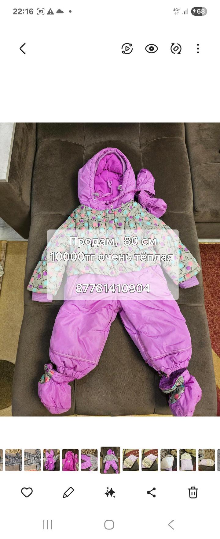 Для мальчика В идеальном состоянии без дефектов 86см. Розовый комплект на выписку в идеальном состоянии. Комбенизон фиолетовый для девочки один сезон одевала, в хорошем состоянии. 80см Артикул: 284130