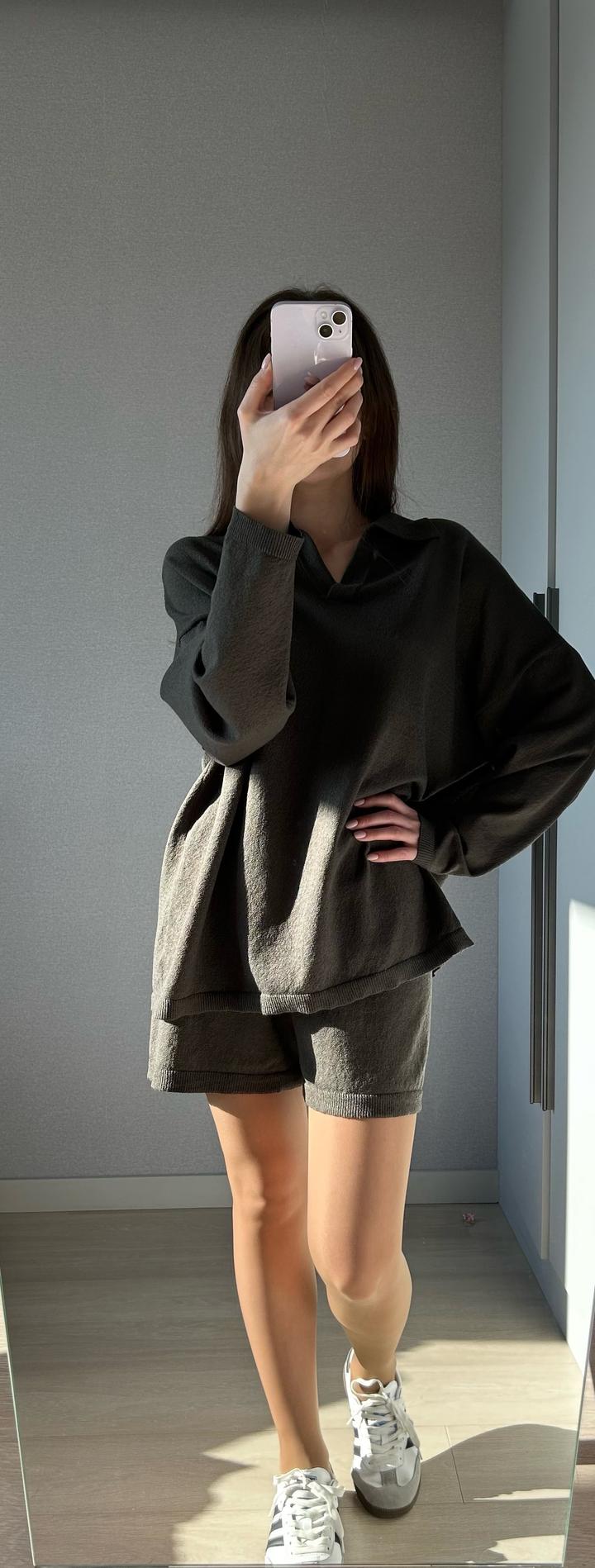 Костюм : удлиненный лонгслив и шорты, плотный материал, oversize В 2-х цветах : черный , граффит Артикул: 284538