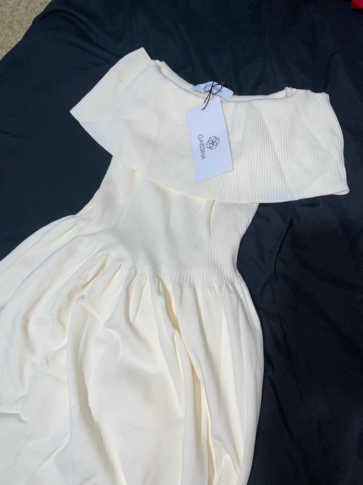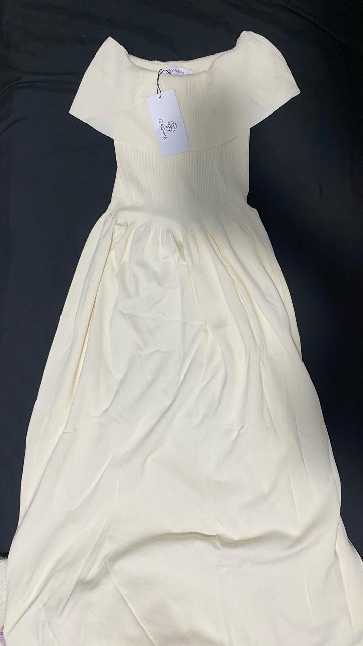 Платье молочного цвета с открытыми плечами. Размер ST стандартный (S-M) Платье длиной ниже колена, НОВАЯ, ни разу не надела😊 Артикул: 285101