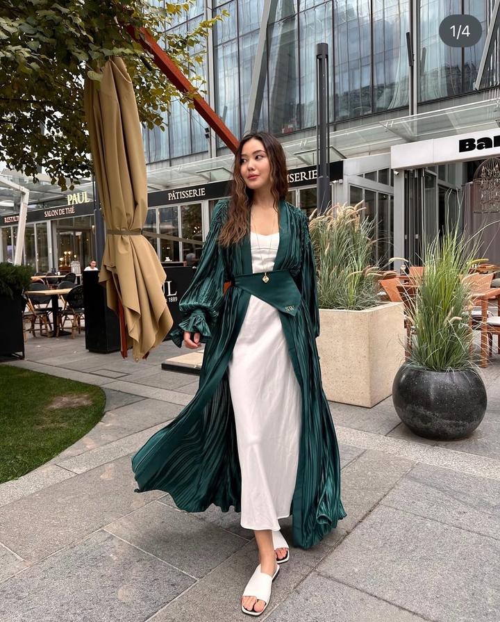 Шикарная Абайка изумрудного цвета Пояс в комплекте Ткань шелк, очень дорого выглядит Надевала всего 1 раз на свадьбу В отличном состоянии Артикул: 286248