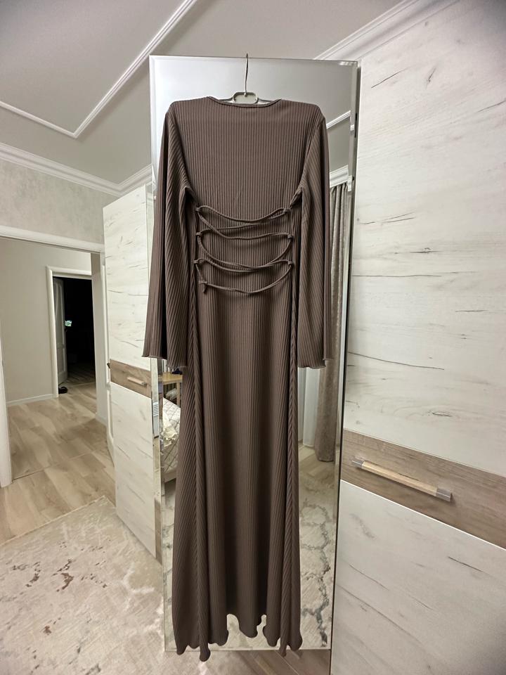Платье макси А силуэта красиво сидит на фигуре, подчеркивая достоинства! Цвет мокко холодный, размер 42-44-46, ткань трикотаж. Артикул: 288656