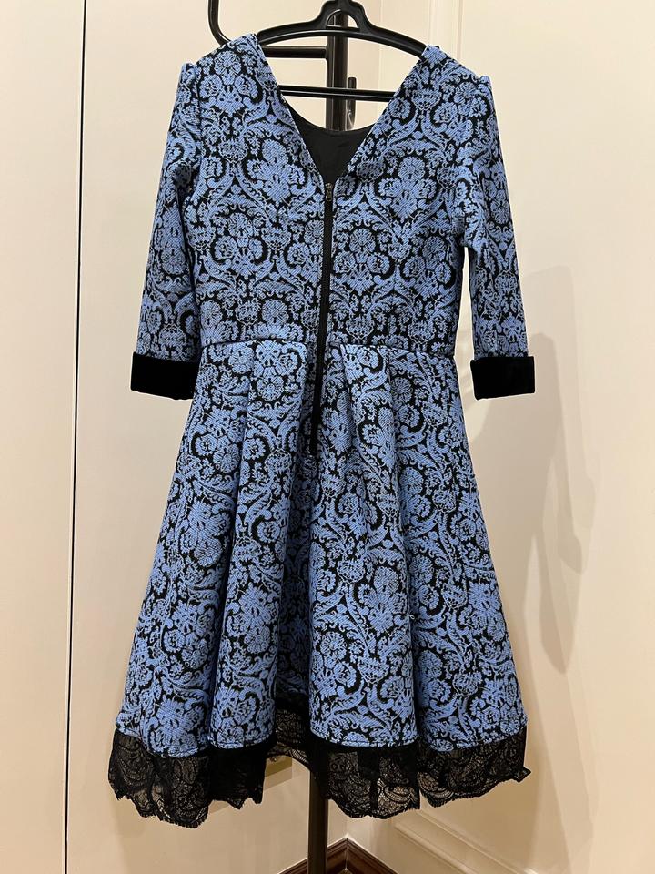 Платье 65% хлопок, 35 % полиэстер, покупала в магазине Кербез, сзади по спинке замок, по подолу декорирован нежным кружевом, на рукаве монжеты из бархата Артикул: 291570