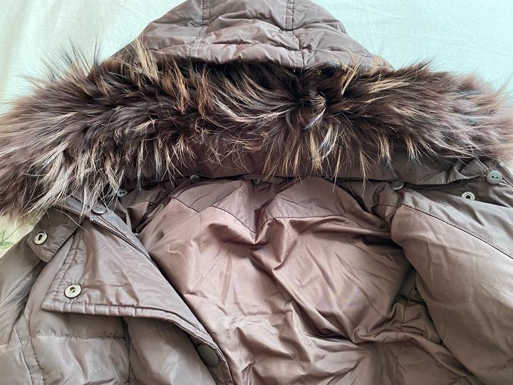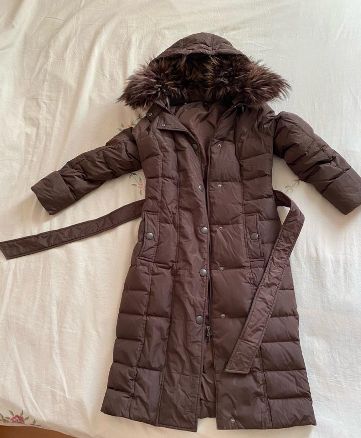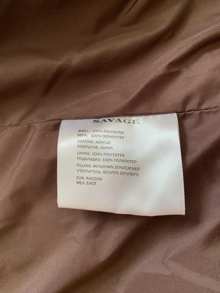 Пуховик Savage, пух-перо, воротник съемный, натуральный, енот. Очень теплый, в хорошем состоянии, для холодной зимы, размер XS/S. Цвет-темный шоколад. Артикул: 291760