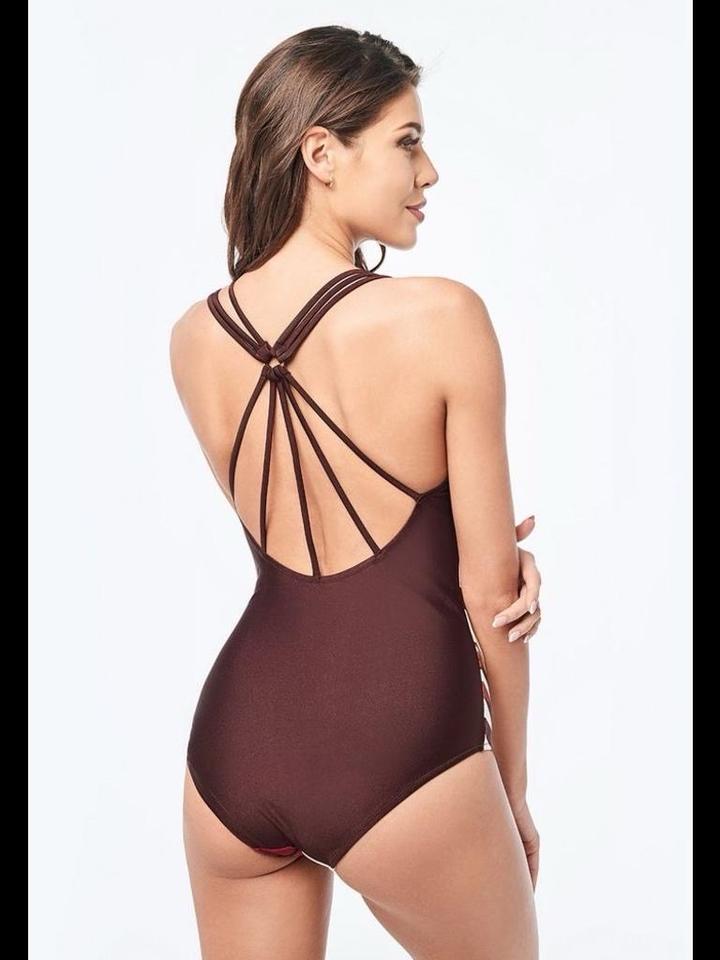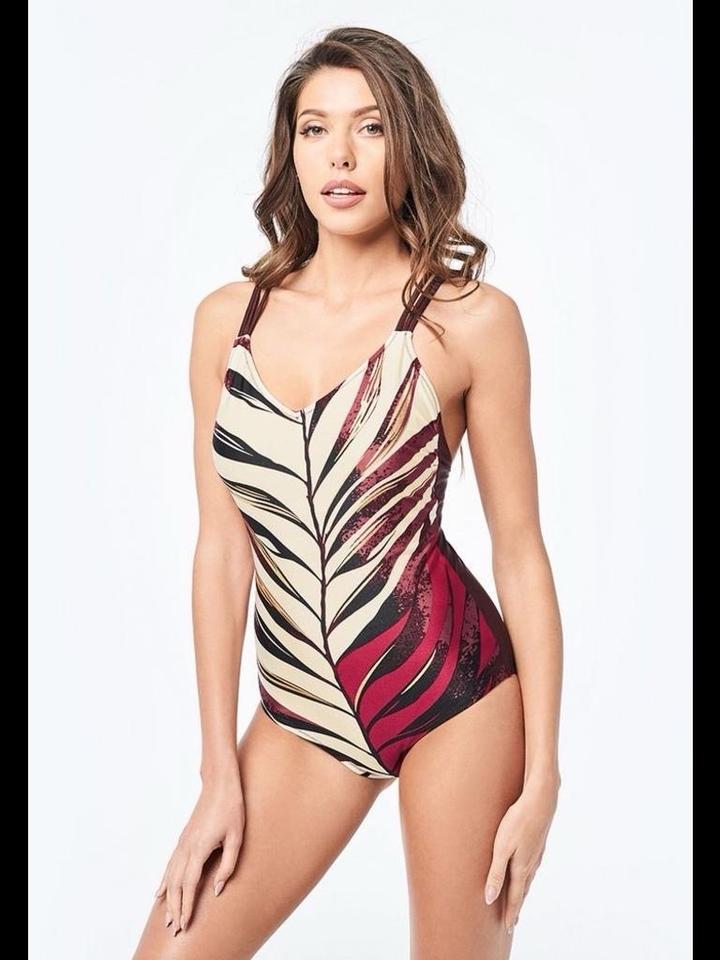 Слитный купальник Sensera Luna из эластичной ткани с ярким принтом с золотистым напылением. Лиф имеет мягкую формованную чашку со съемным формованным вкладышем. Тройные бретели на спинке соединяются металлическим золотистым кольцом. В носке был пару раз. Качество отличное. На размер 44-46 (М) рост 163-167 Артикул: 292568