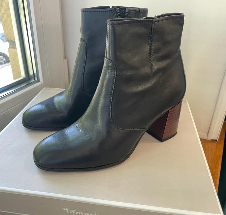 Женские ботильоны Tamaris. Размер 36. Подходит на длину стопы 23,5-24 см. В отличном состояние. Верх из натуральной кожи. Высота каблука 6,5 см. Стелька съёмная и сменная. Артикул: 292699