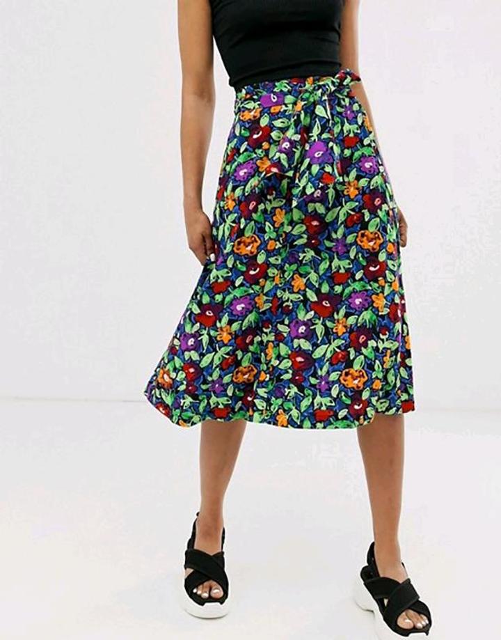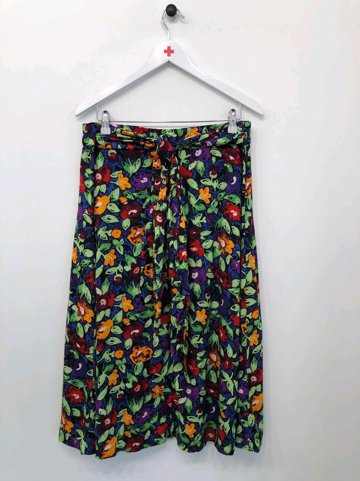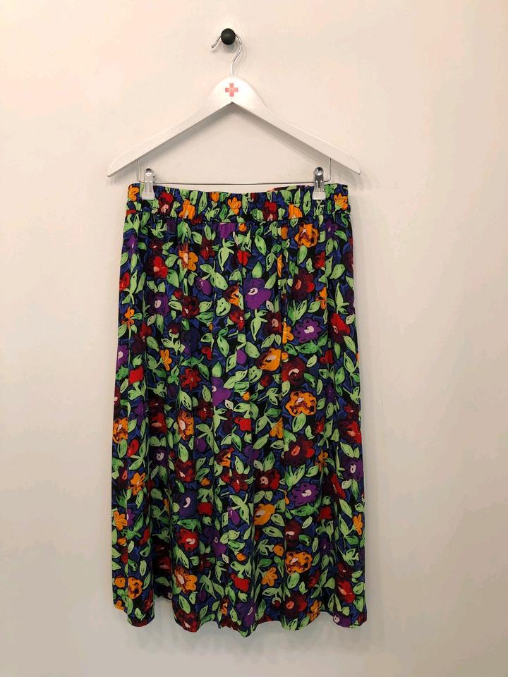 Яркая юбка длины миди с цветочным принтом авторского дизайна, бренд MONKI. Сзади на талии резинка, по бокам вшиты ленты чтобы завязать. Обожаю эту юбку, прожила с ней лучшие приключения, но поменялся стиль. Состояние отличное, никаких дефектов. Размер xs Артикул: 294659