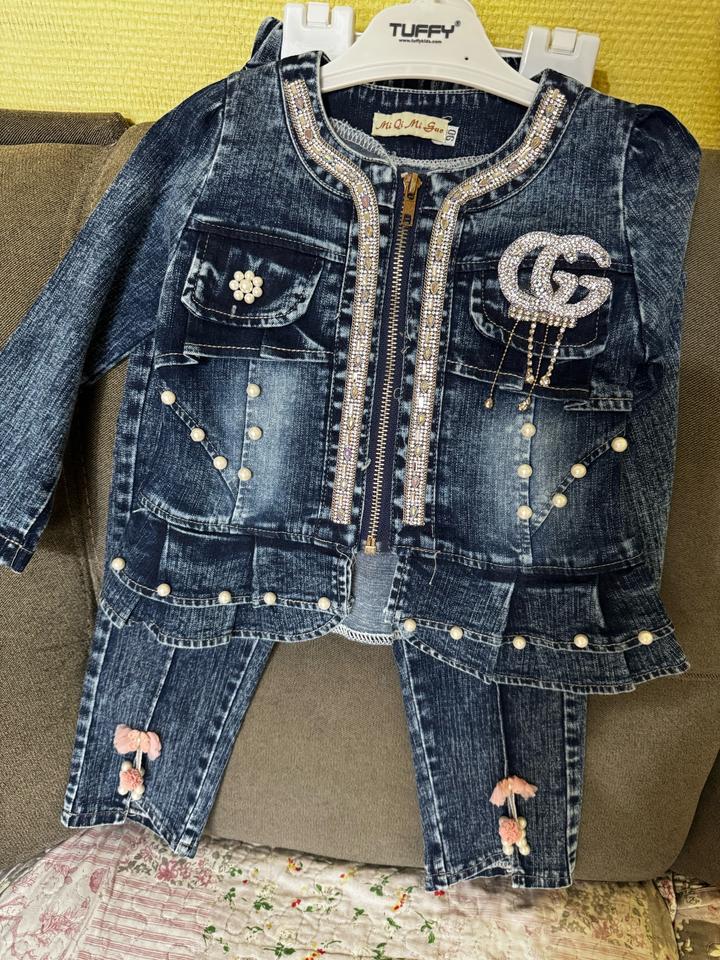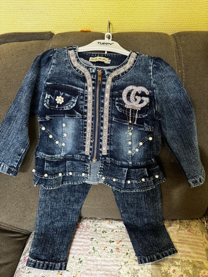Джинсовый костюм детский размер 90 одели один раз, в камнях, класный костюм для девочки самое то Артикул: 296188